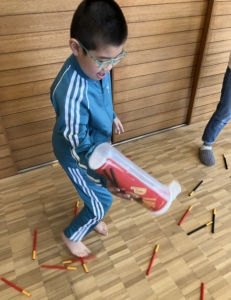 ストローでできたポッキーを見て「ポッキーたべた~い」と食べたくなっている子どもたちでした😆
