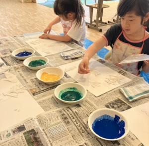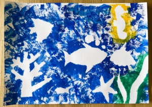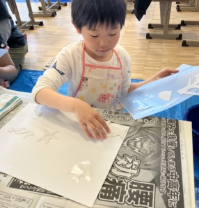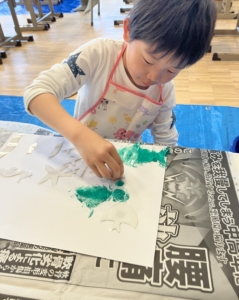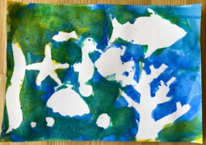 今回は海をモチーフにした「ステンシルアート」をしました。