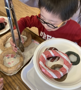 トングを上手に使いこなしてドーナツ屋さんになりきってくれていました☺