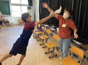 そのあとはウォーミングアップもかねて「ティッシュキャッチ」をしました。
