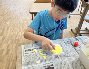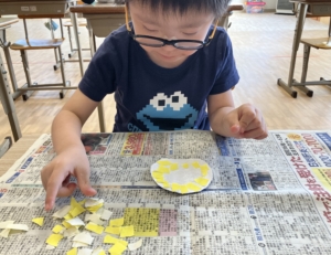 ちぎり絵のように細かい紙を貼る作業などをしました。