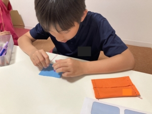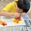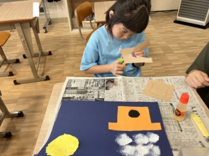 ハサミで切る作業、ちぎり絵の作業、お手本の通りに貼る作業を行いました。