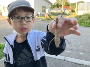 外遊びをしているときに、大きなカマキリを見つけました😆