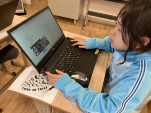 お化け屋敷の装飾についての話し合いでは、パソコンで装飾について調べて、意見を出してくれました🎃