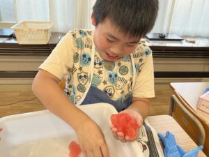 スライムの感触を「おもちみたい!」と表現してくれるお友達もいました😆