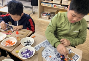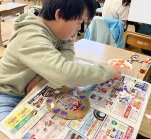 ちぎり絵で色付けする作業をしました!