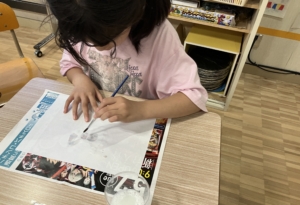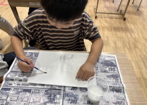 ④作った洗剤水を筆に付けて好きな絵を描きます