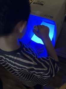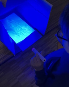 ⑤描いた部分をブラックライトで照らすと、、?