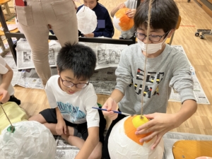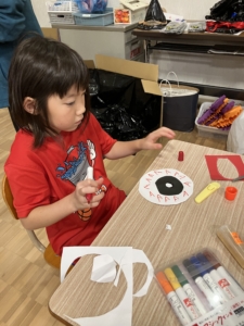 「怖い顔にしようかな」と顔のパーツをこだわっているお友達もいました。
