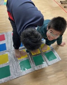 ②「右手を青」などとお題が出されるのでその通りに体を動かします