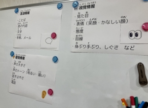 実際に職員のやりとりのロールプレイを見てもらい、気を付けたらいいところをみんなで考えました。