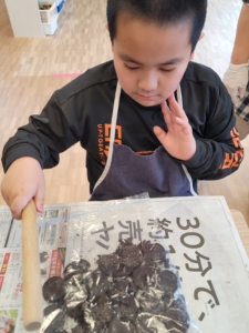 グループに分かれて、クレープ作りをしました!