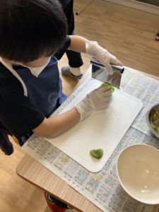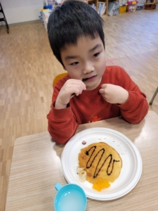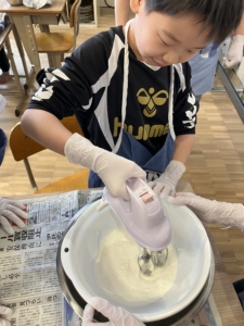 フルーツを切る係、クリームを泡立てる係、生地を焼く係など、それぞれ自分の担当を頑張りました!