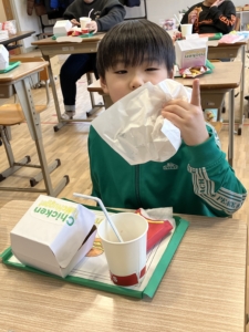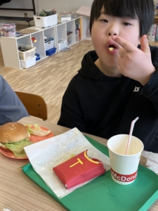 昼食は、マクドナルド風のランチセットをみんなで作りました!