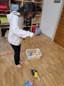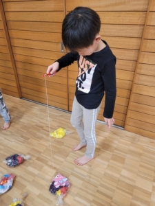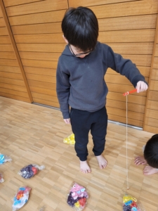 フックがゆらゆら動くので大人でも難しいのですが、諦めることなくとても集中して取り組んでいました!