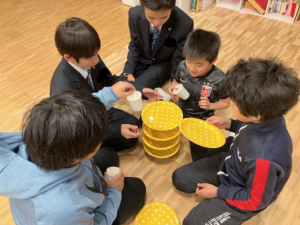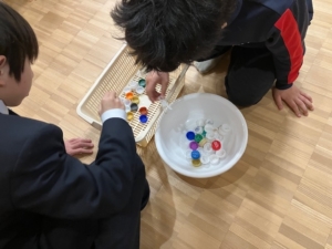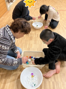 慎重に1個ずつ移すお友達、大胆に2個同時に移すお友達、それぞれ個性が出ていて面白かったです😆