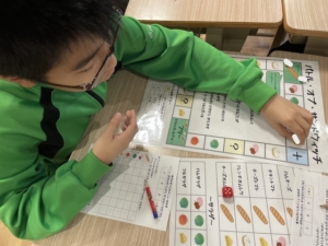 すごろくのようなゲームで、サイコロを振って自分のコマを進めていきます。
