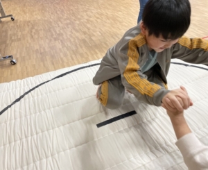 はっけよーい、のこった!の合図で相手を押したり、倒れないようにバランスをとったり、