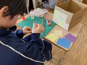 カラフルな折り紙を隙間なくきれいに貼ったり、