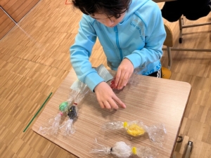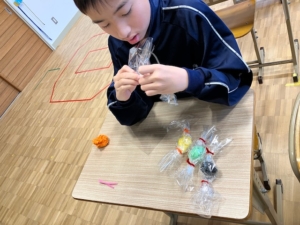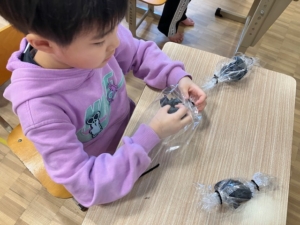 お花紙の色から、あめの味の想像をふくらませているお友達もいました😊