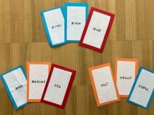 まず1人1枚、イラストや文字が書かれているカードが配られ、