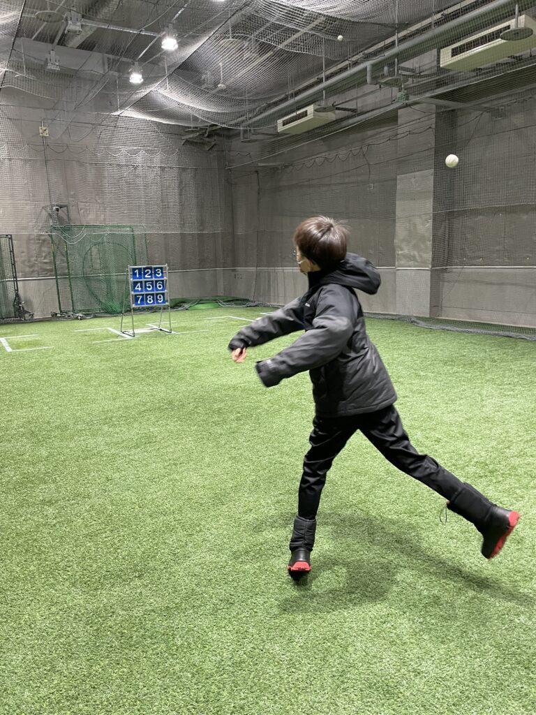 ここでは、芝を触らせてもらったり、ストラックアウトも体験させてもらいました!