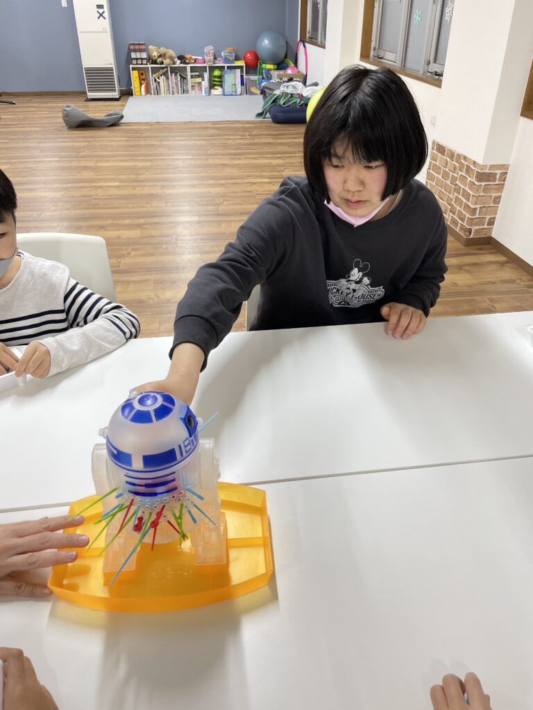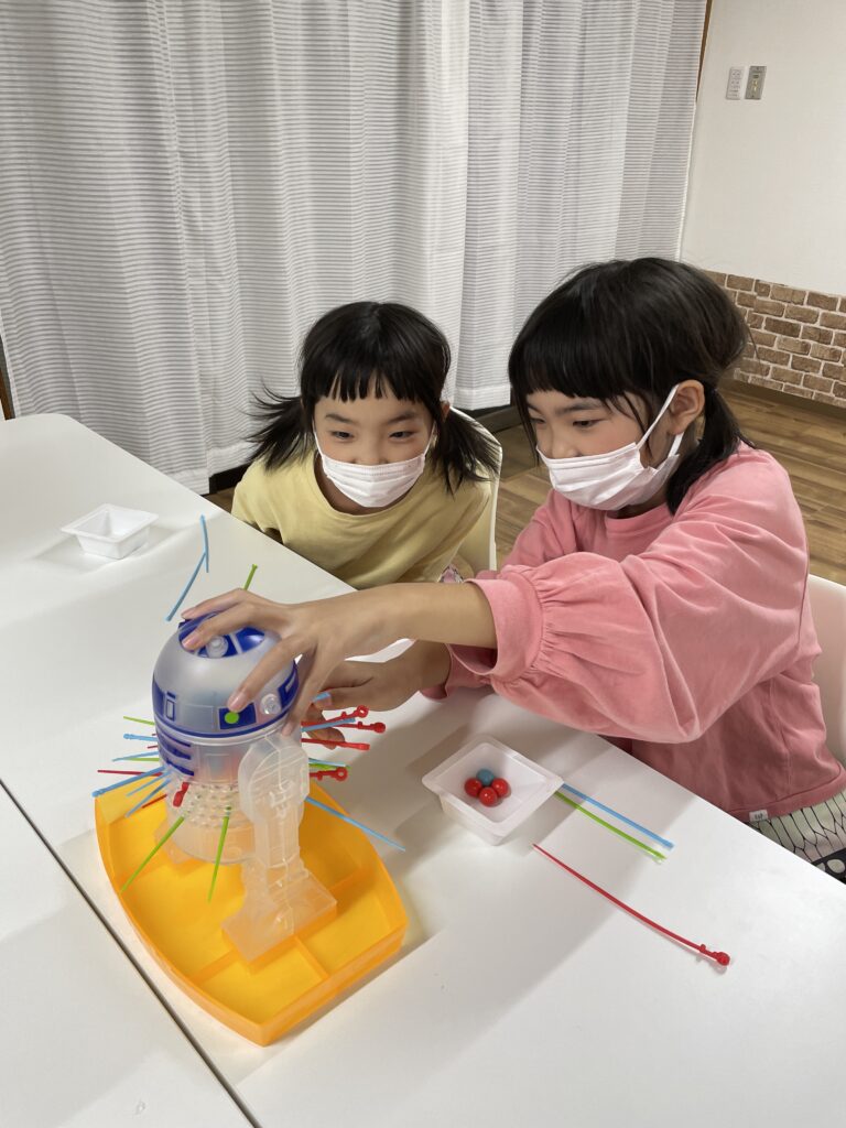 攻略法を見つけた子は、ほとんど落とさずに串を抜いていました!