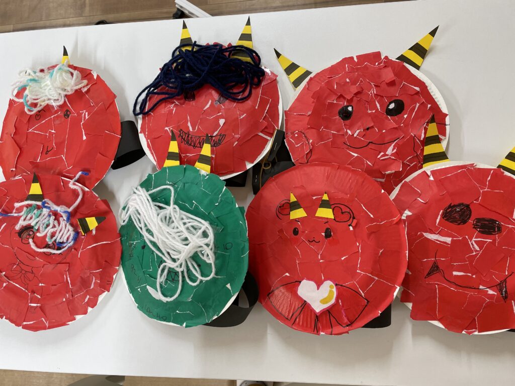 節分の日には、今日作ってくれたアイテムを使って豆まきをしていこうと思います^^