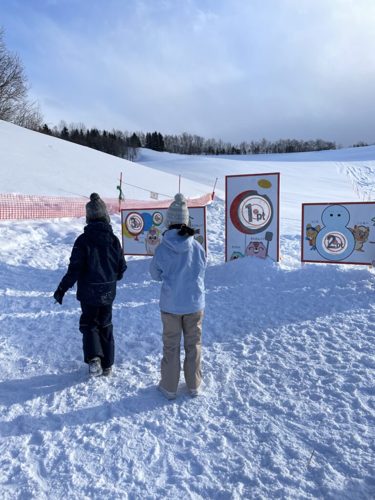 的を狙って雪玉を投げるコーナーもあったりと、雪で思う存分遊びました!