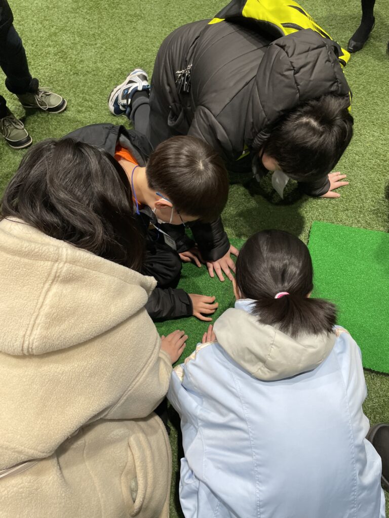 選手の「疲れて座っている」姿を真似した子もいました笑