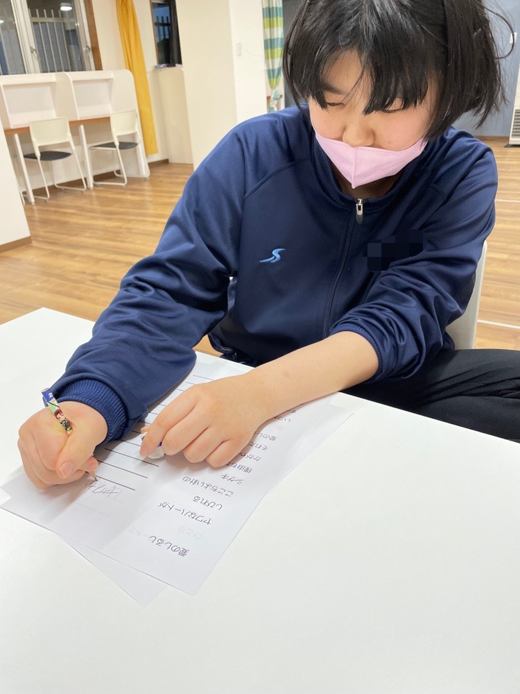 学校からの宿題を行う子もいれば、たまみずきで用意した学習プリントを行う子もいます。