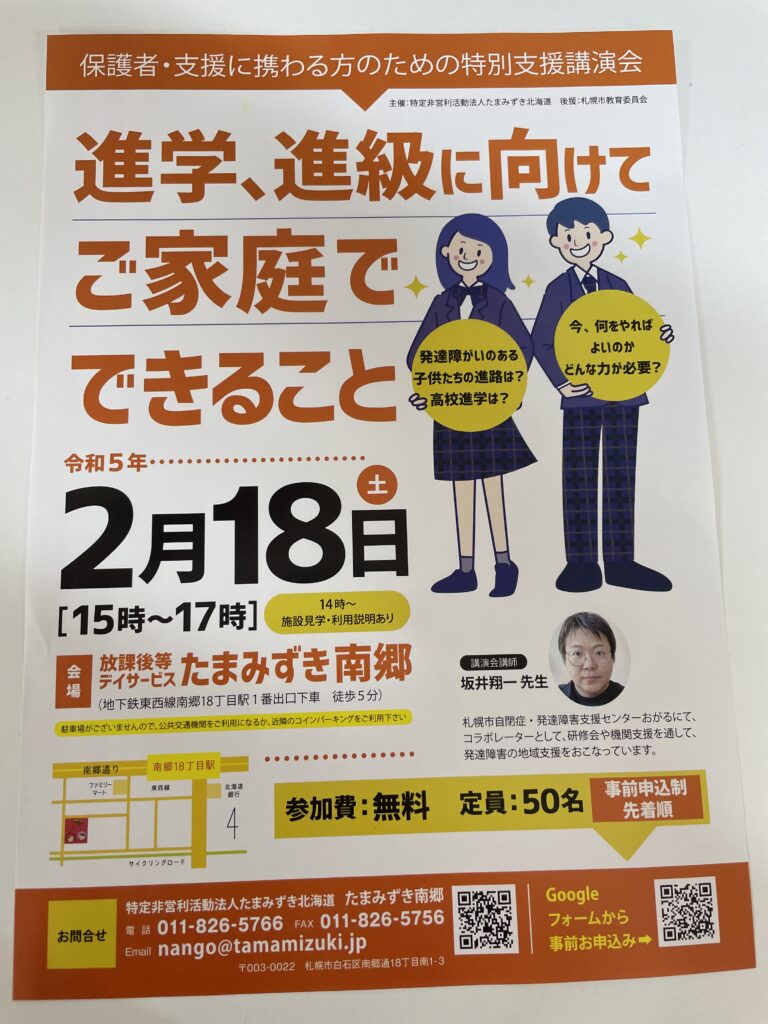 たまみずき南郷では、2月18日(土)15時~17時で講演会を開催します。