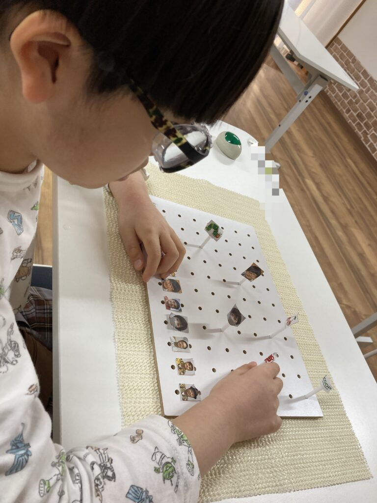 先月に引き続き指先の運動がテーマの子は、同じ課題を今月も取り組んでいます。
