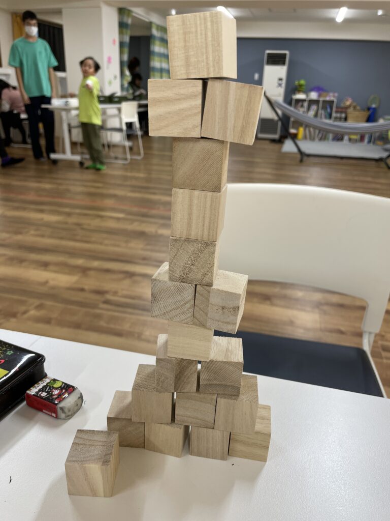 積み木がとっても得意で高く積み上げていました!