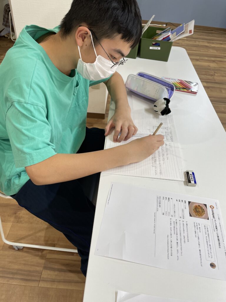 今月から新しくたまみずきに来ている子は、今週もレシピ作りと、いまのきもっちというプリントを行ってもらいました。