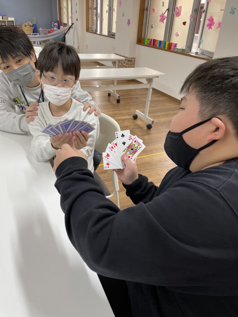 ババ抜きは座って行うので、自然とお友達とも距離が近くなりますね^^