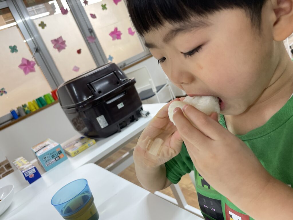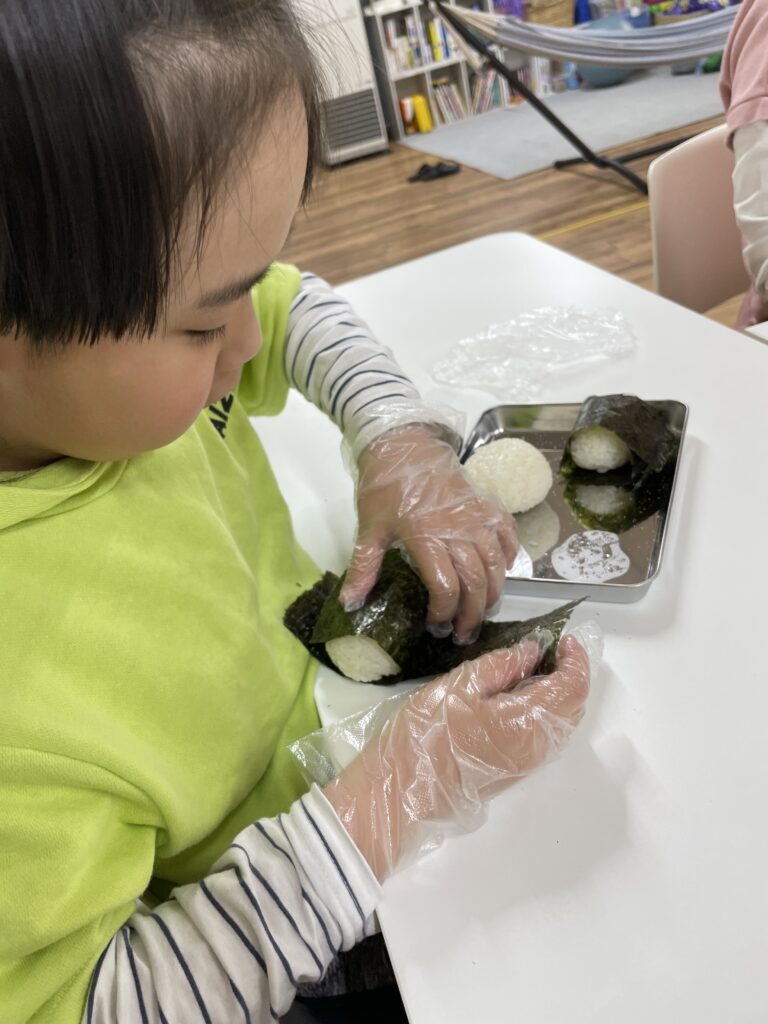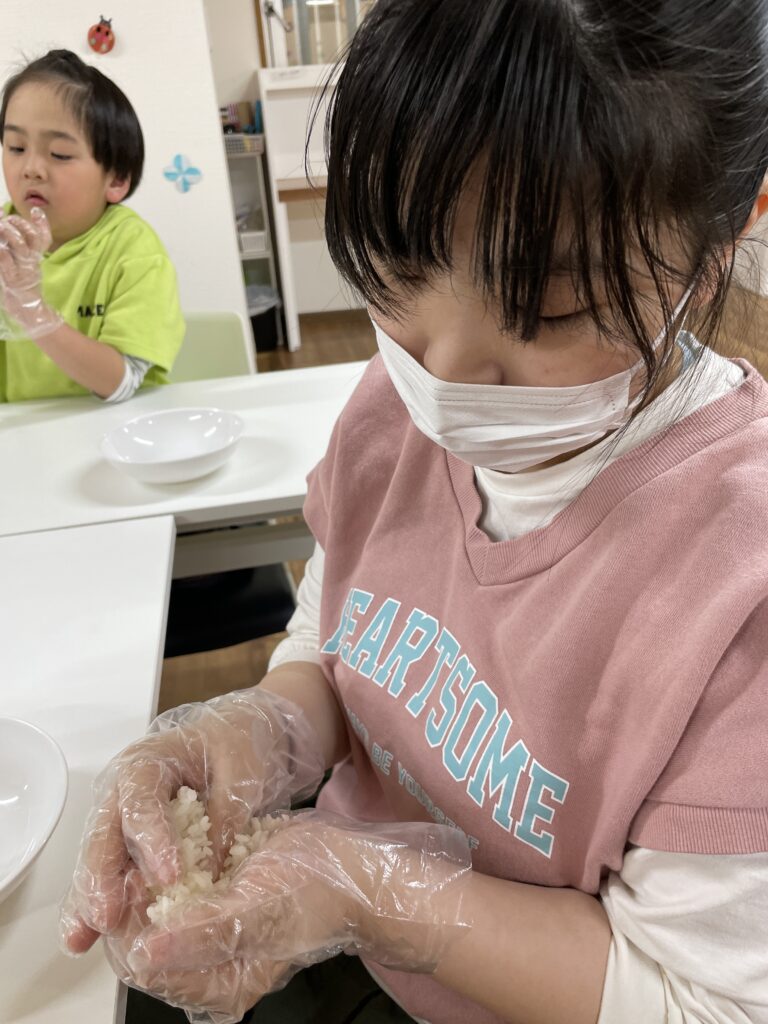 どんな風に握ったら、三角の形になるかな?ということを教え合いながら作りました。