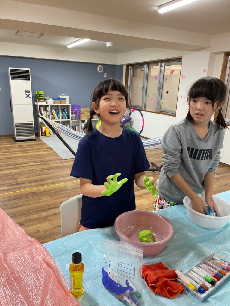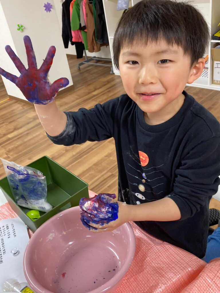 その後もこねたり伸ばしたりして、感触を楽しんでいました!