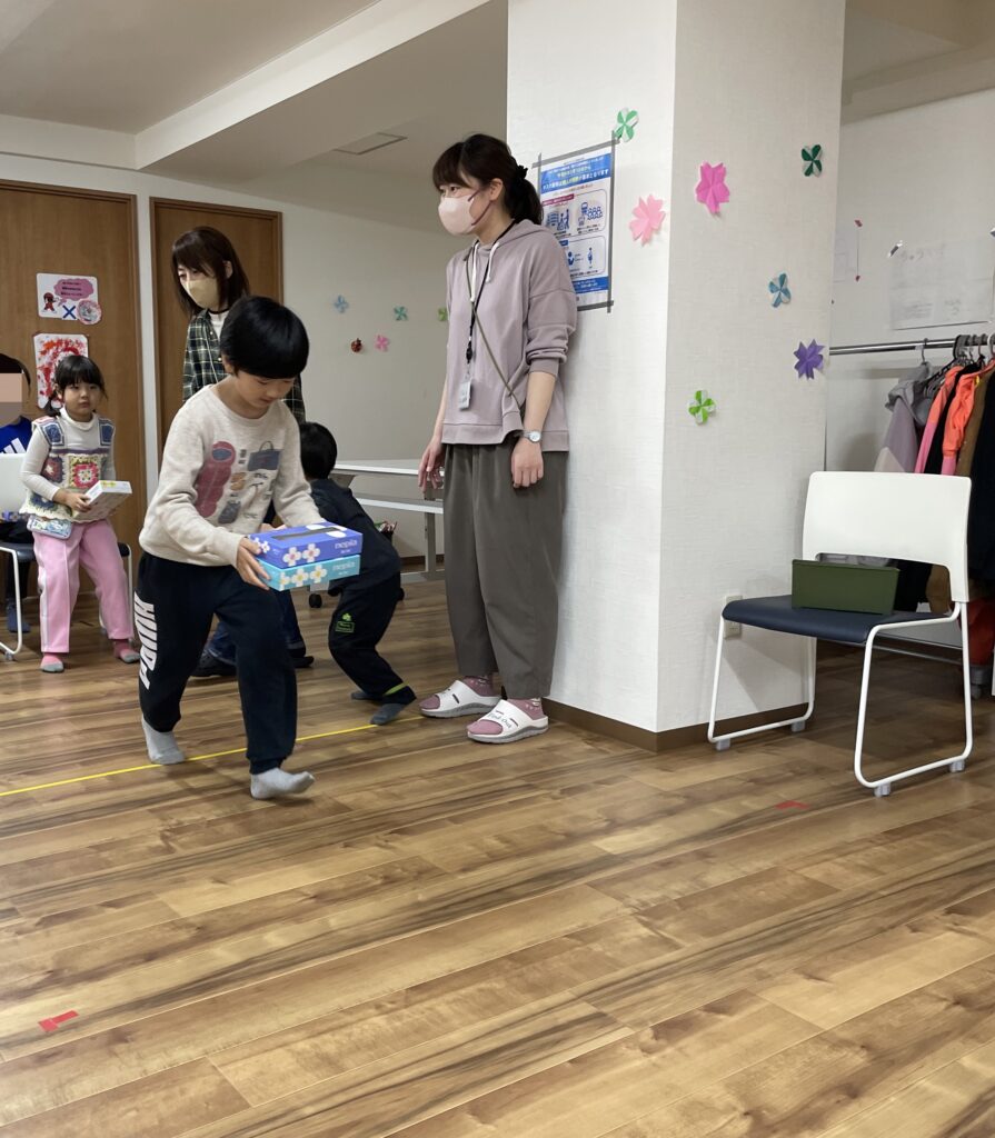 2つ目のリレーは、【ティッシュ箱運びリレー】を行いました。