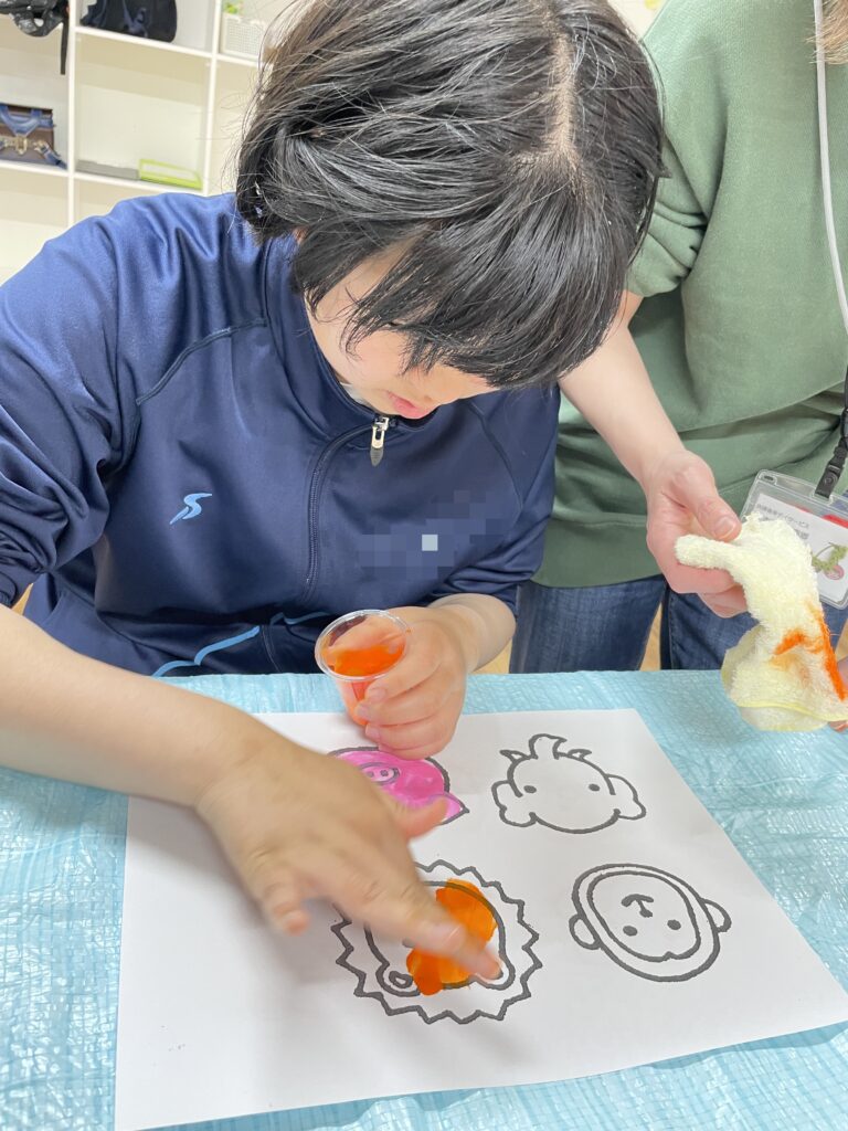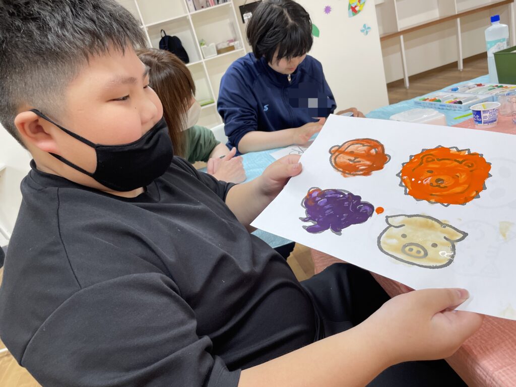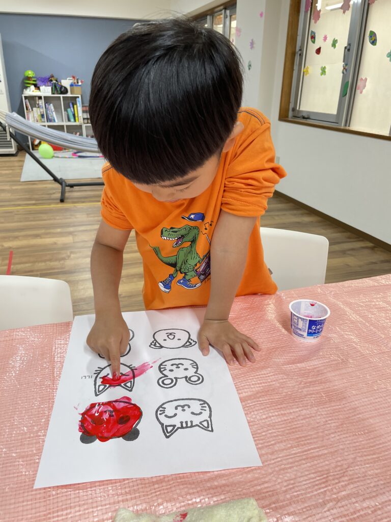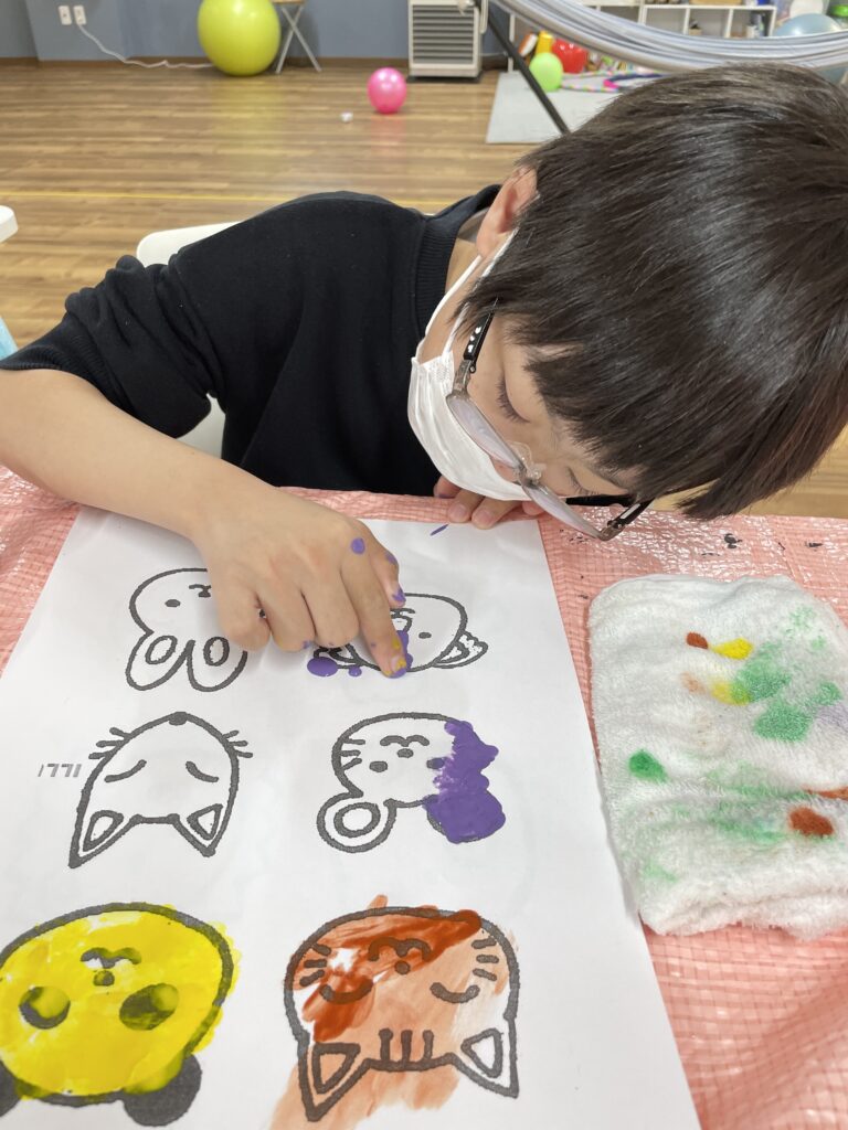 指で絵の具を塗るなんて、なんだか罪悪感もありつつ、楽しんでもらえたかなと思います^^