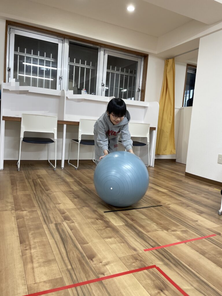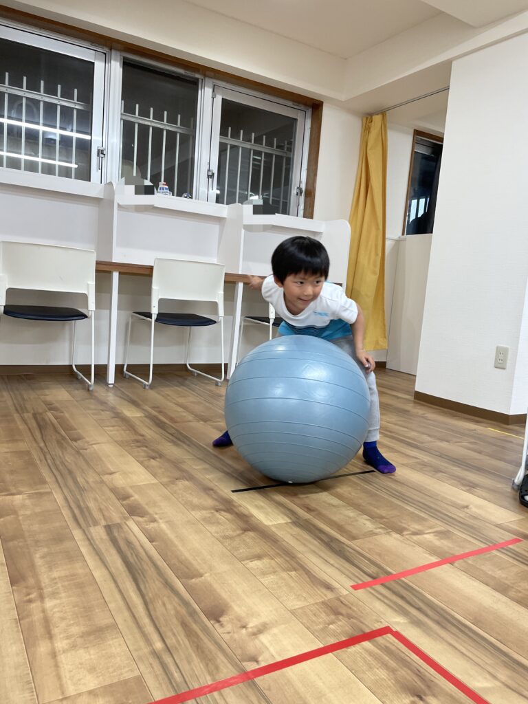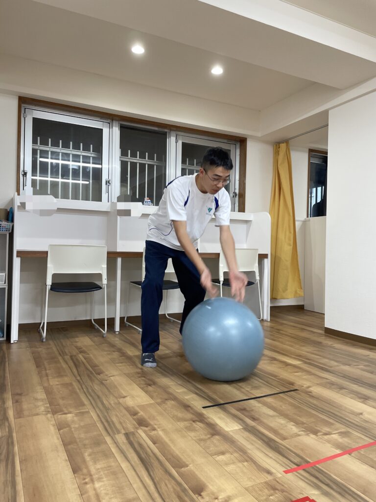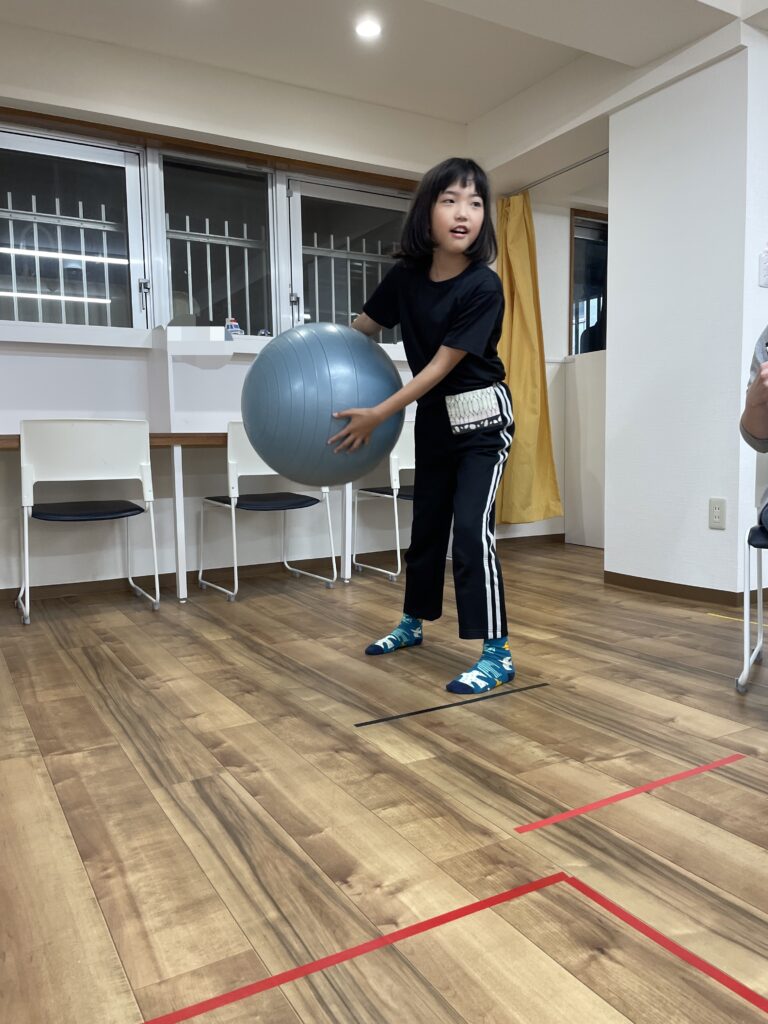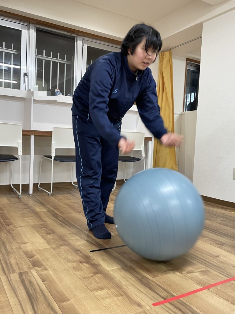 ボールは、誰でも倒せるようにと、今日はバランスボールを用意しています🎳