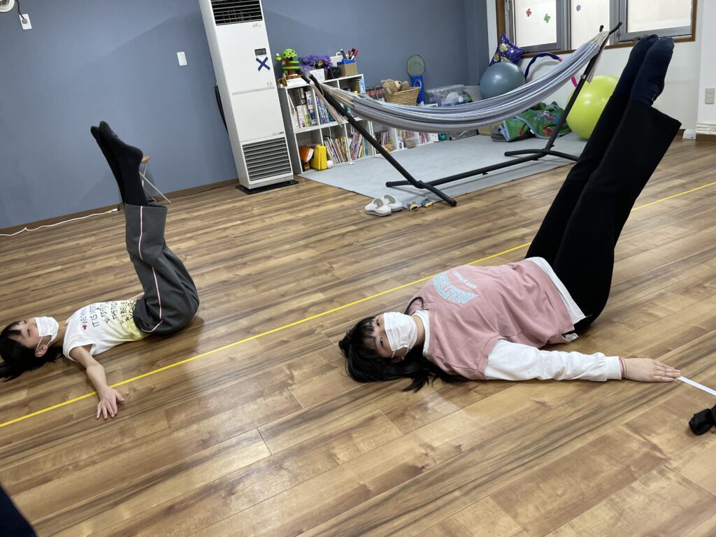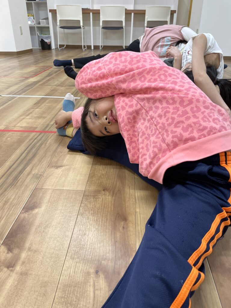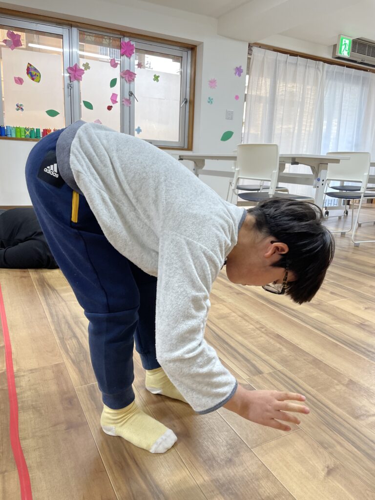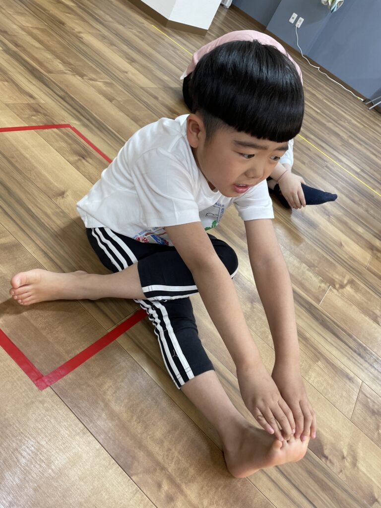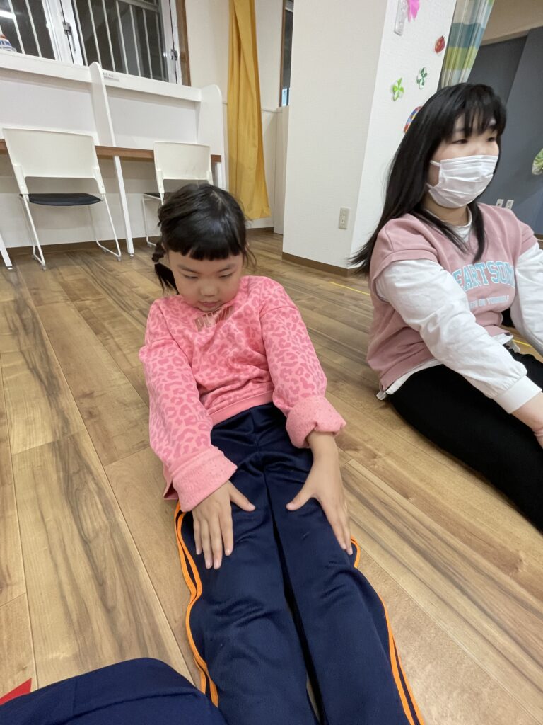 「いたいよー」と言いながらもみんな一生懸命身体をほぐしていきました👍