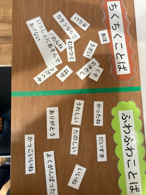カードの分類のあとは、ふわふわ言葉とちくちく言葉のカードを使っています!
