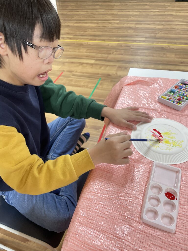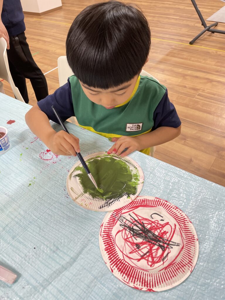絵の具は、筆を使ったりフィンガーペイントでやったりと、子ども達に自由に作ってもらいます^^