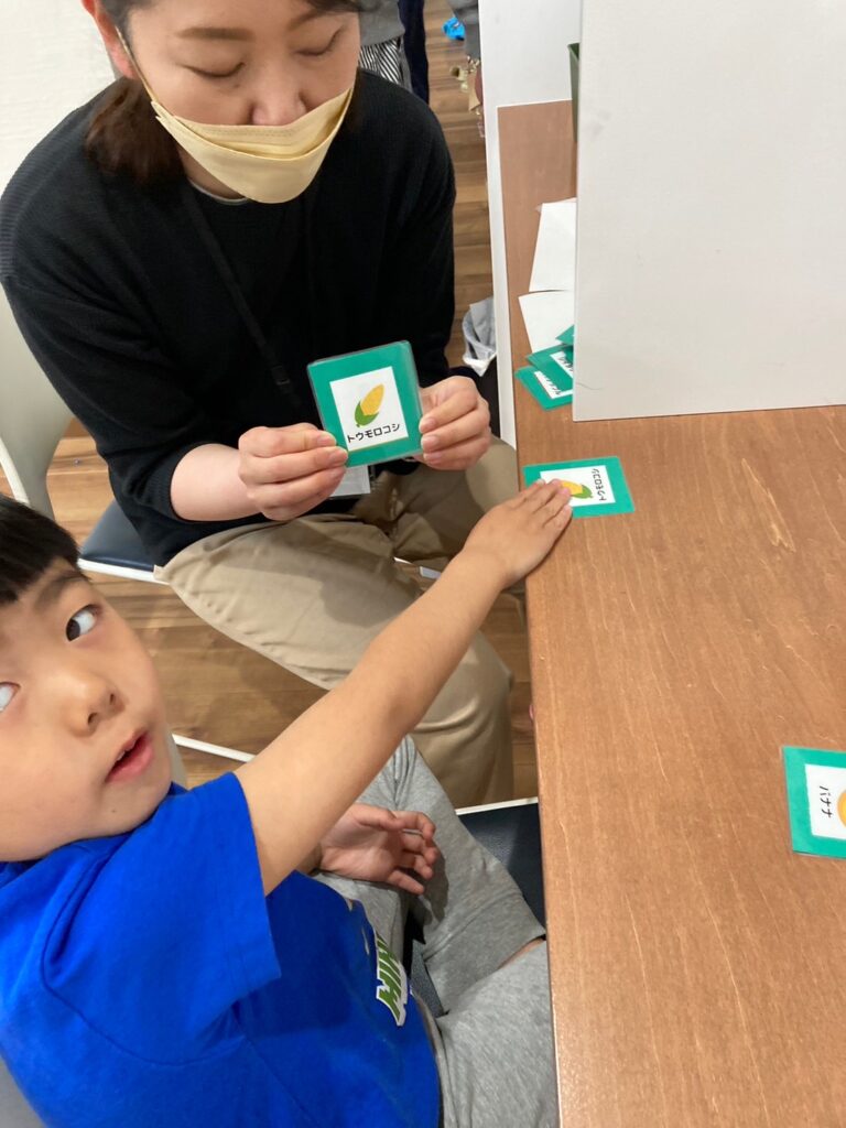 野菜の断面図と野菜をマッチングできるかを学ぶ子、そして言葉の並べ替えも行いました😆