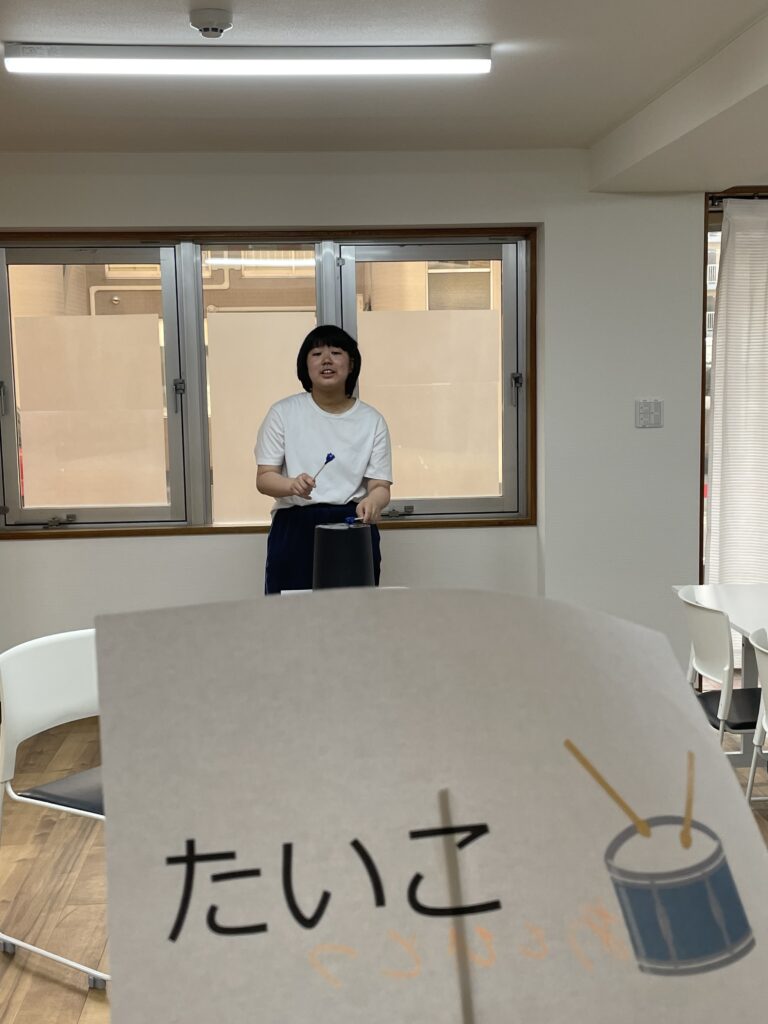 4種類を聞き分けて音楽にのっていきますが、一度道具や動きを紹介しただけですぐに覚え、完璧にのっていました♪