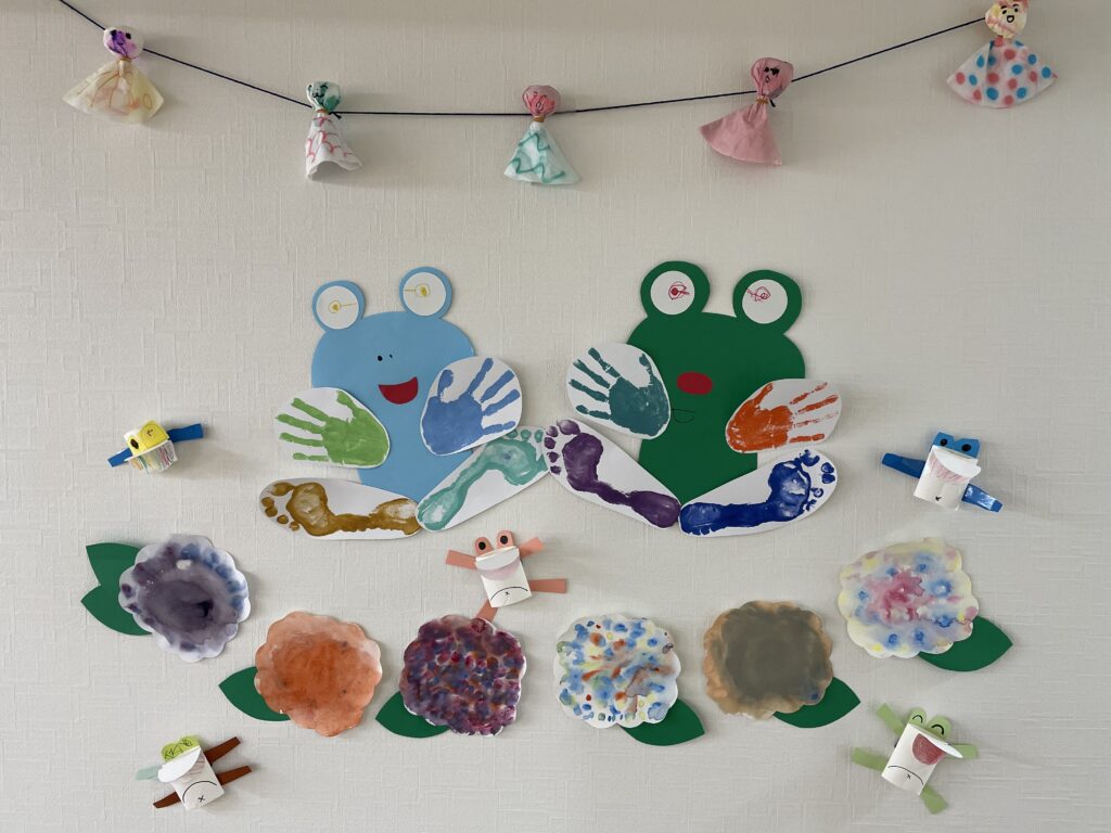 お部屋の壁に飾っているだけで季節を感じることができる作品となりました🐸☔