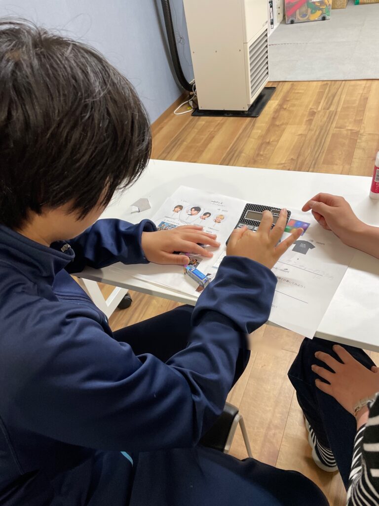 選んだグッズは5000円以内で買えるのかを電卓で計算してもらいました。