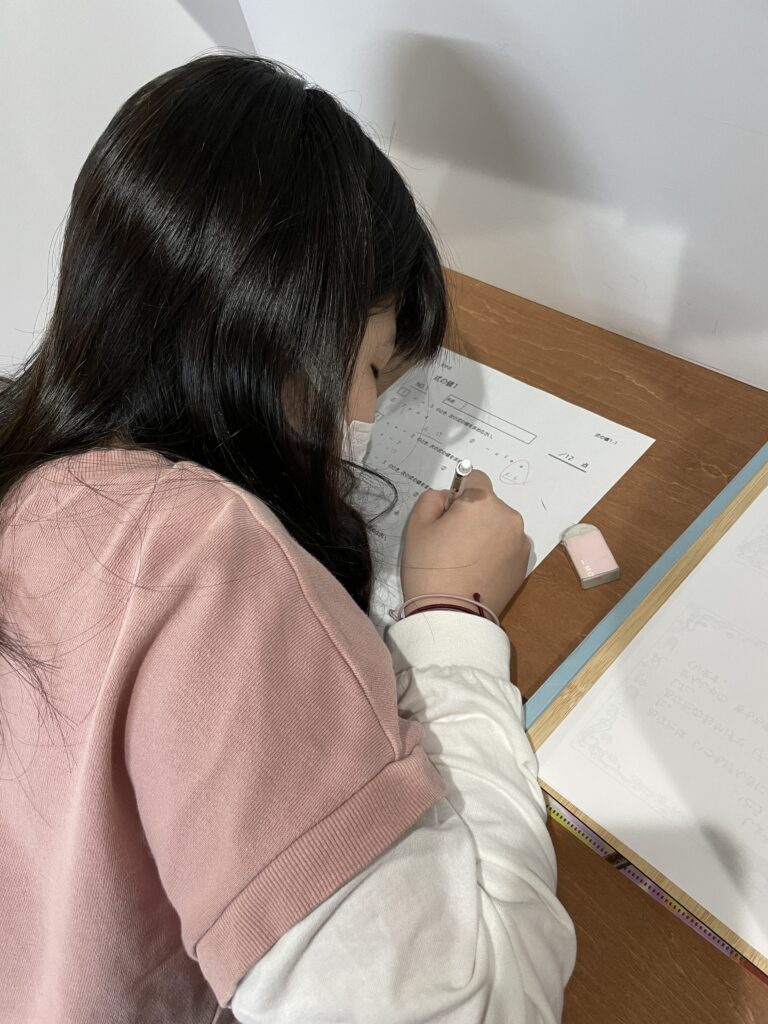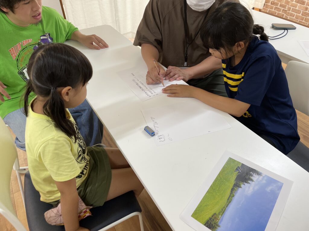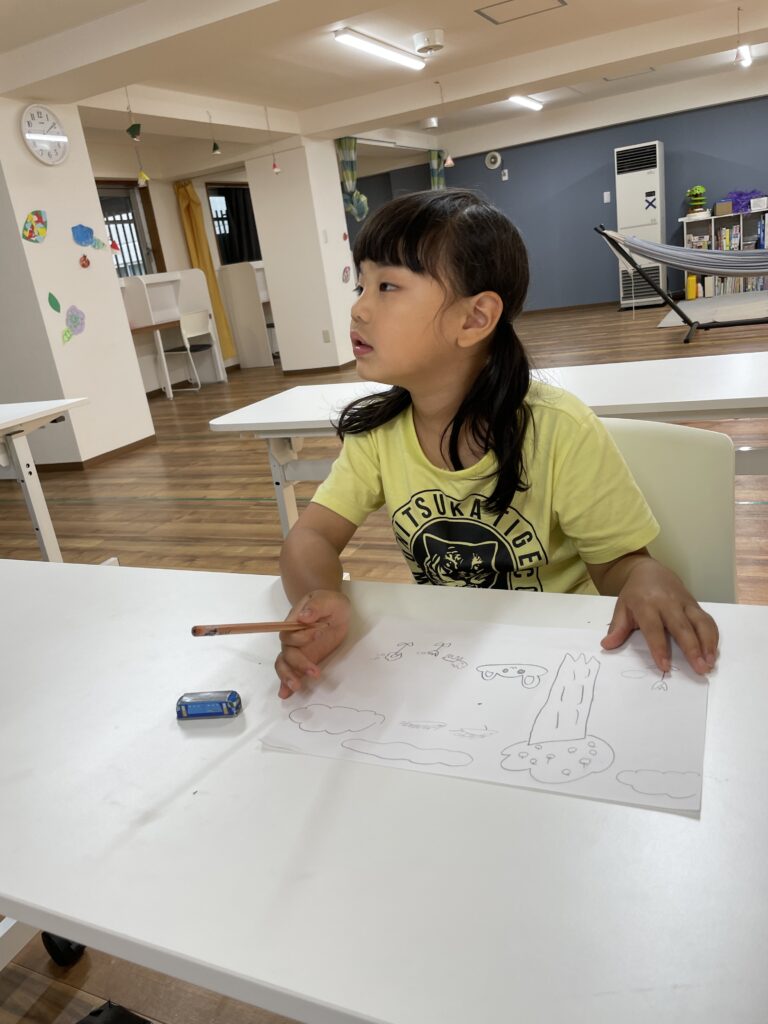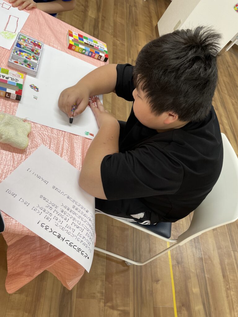 最近学習している英語の復習の為に、先週の続きで、職員が考えたあつもりキャラのセリフの訳を行ったり、数学の問題に挑戦している子もいます📖