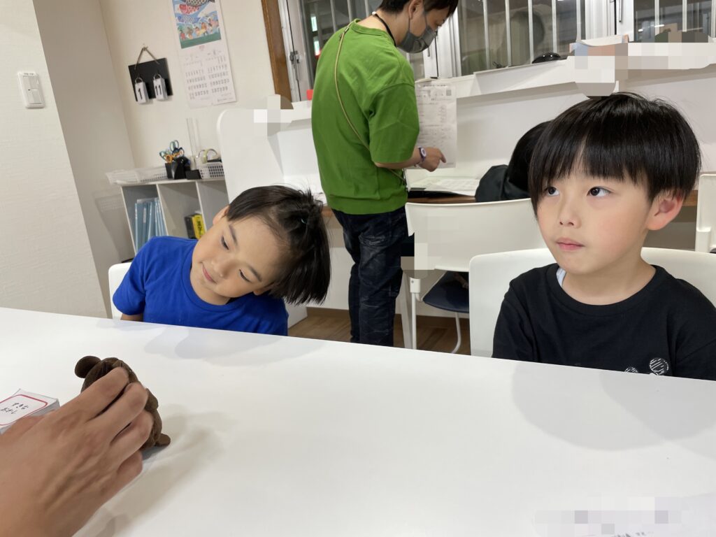 聞く役の子は、話す役の子がそれぞれ何を言ったのかを聞き分けます。